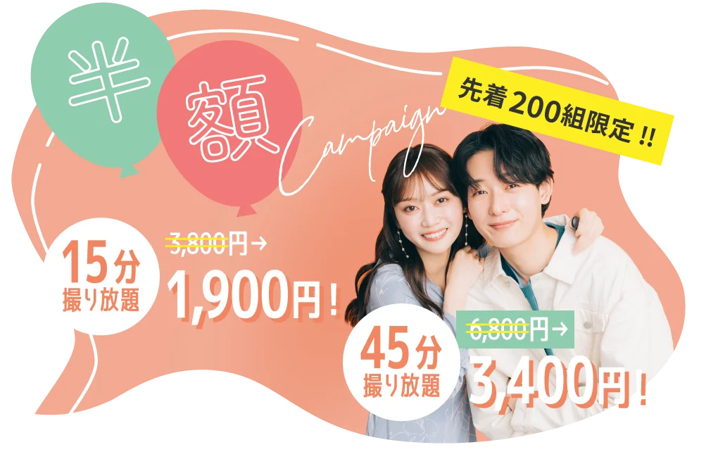 | 45分撮り放題プラン | 1人につき 3,000円 |